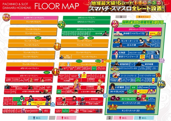 - [1]パチ:260台 [4]パチ:320台 [0.2]パチ:20台 [1000円/46枚]スロ:280台 [5]スロ:80台 [2]スロ:20台