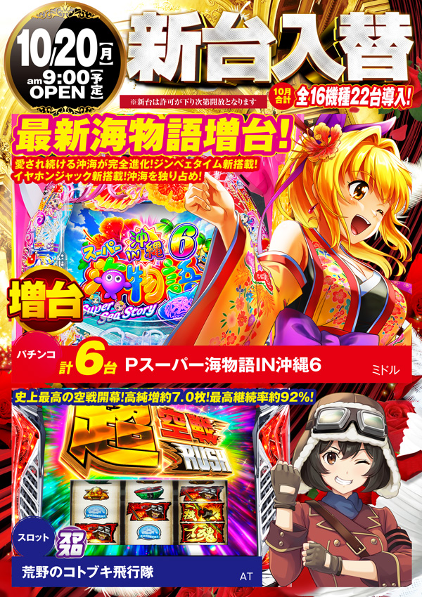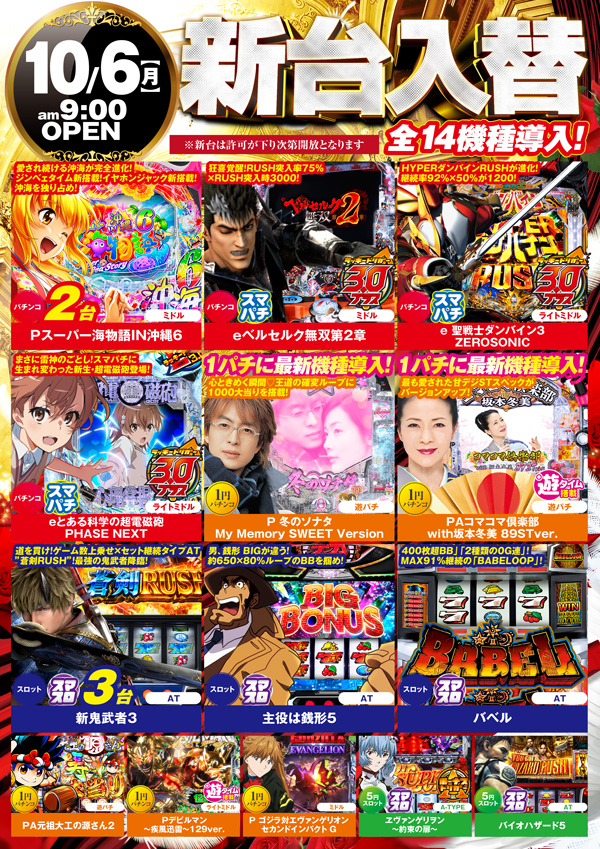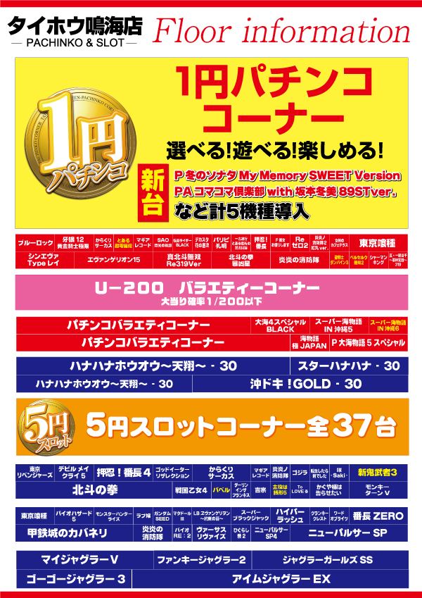 - パチンコ: [500円116玉] [1] パチスロ: [1000円47枚] [5]