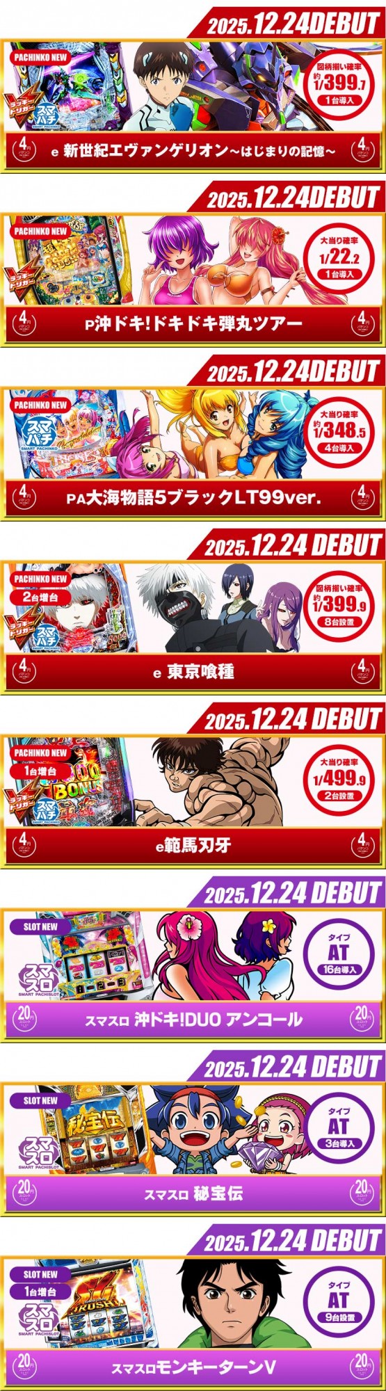 - [4]パチ:207台 [1]パチ:77台 [20]スロ:200台