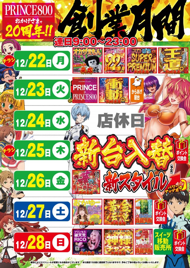 - [1.25]パチ:176台 [4]パチ:220台 [1000円/46枚]スロ:356台 [6.25]スロ:48台
