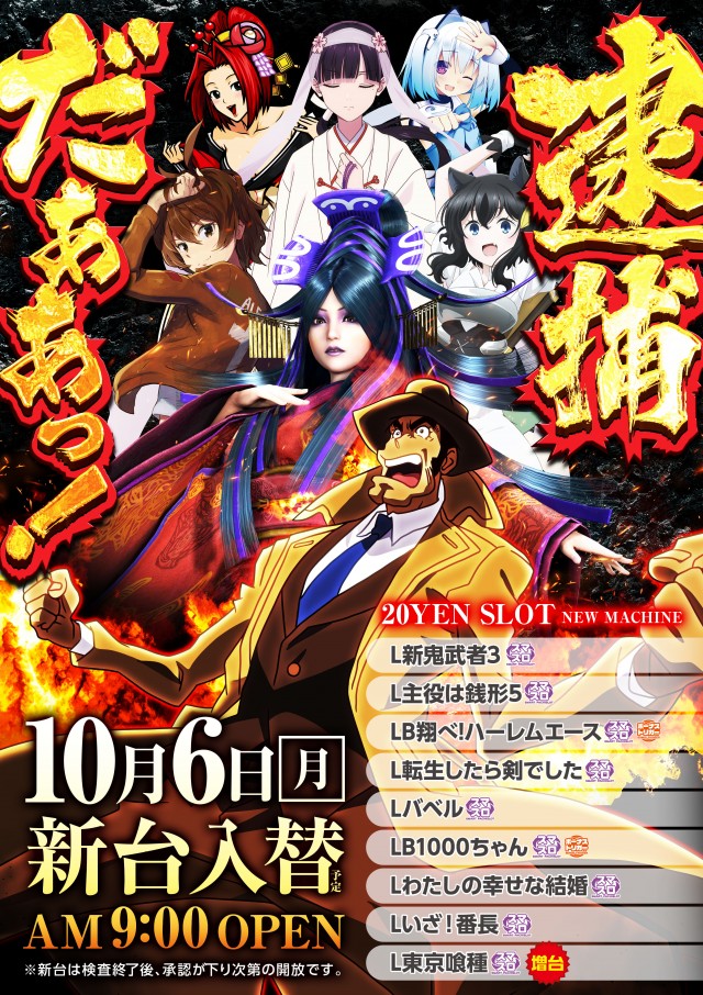 - 9:00~22:45 ※新台入替準備等により変更になる場合がございます