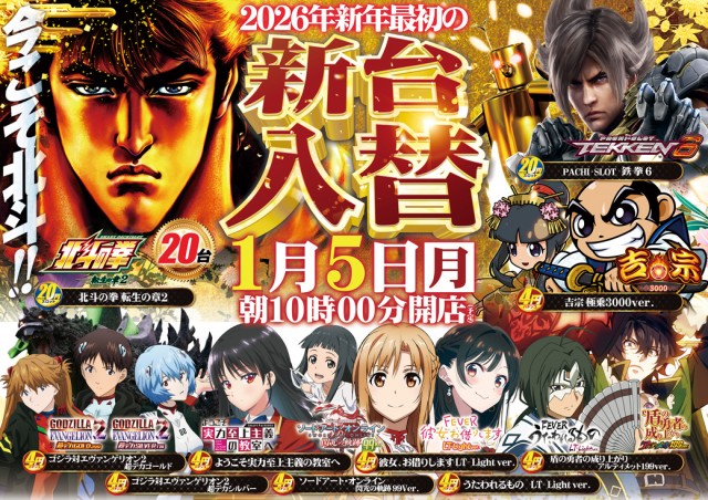 - [4]パチ:352台 [1]パチ:482台 [1000円/46枚]スロ:400台 [5]スロ:283台