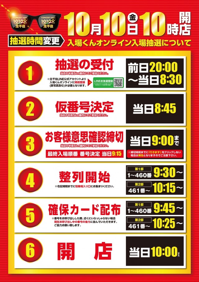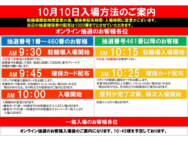 - 入場くんオンラインにて抽選(当日朝9時まで受付)