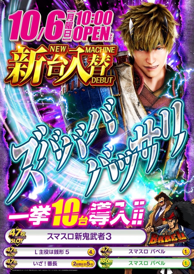- 10:00~23:00(遊技終了22:40)