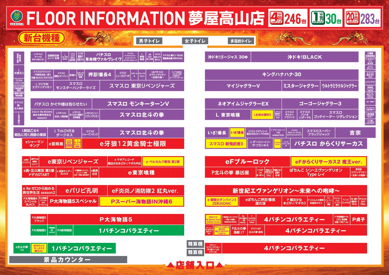 - [4]パチ:246台 [200円/180玉]パチ:30台 [1000円/46枚]スロ:283台