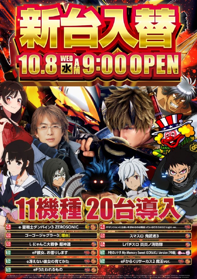 - パチンコ 320台【4円パチンコ64台・1円パチンコ256台】/スロット 158台【10円スロット158台】