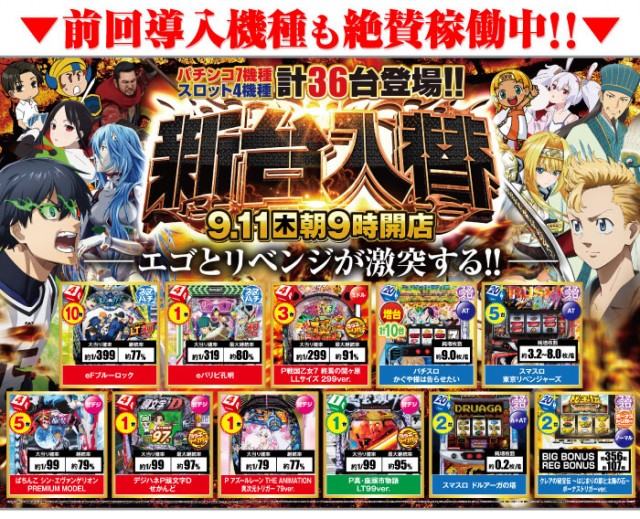 - [4]パチンコ 320台 [1]パチンコ 240台 [20+]スロット 358台 [5]スロット 38台