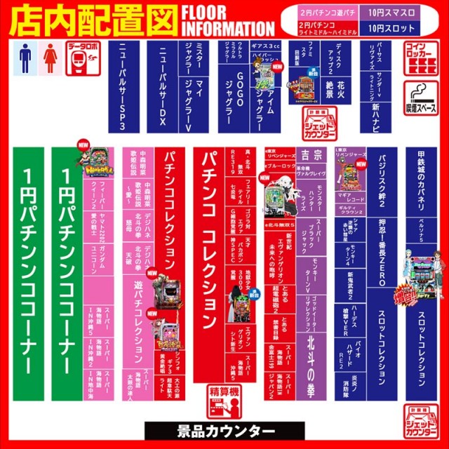 - [2]パチ:114台 [1]パチ:38台 [10]スロ:123台