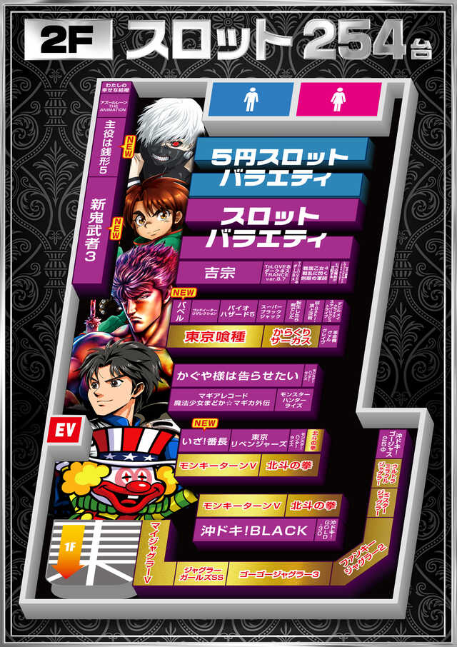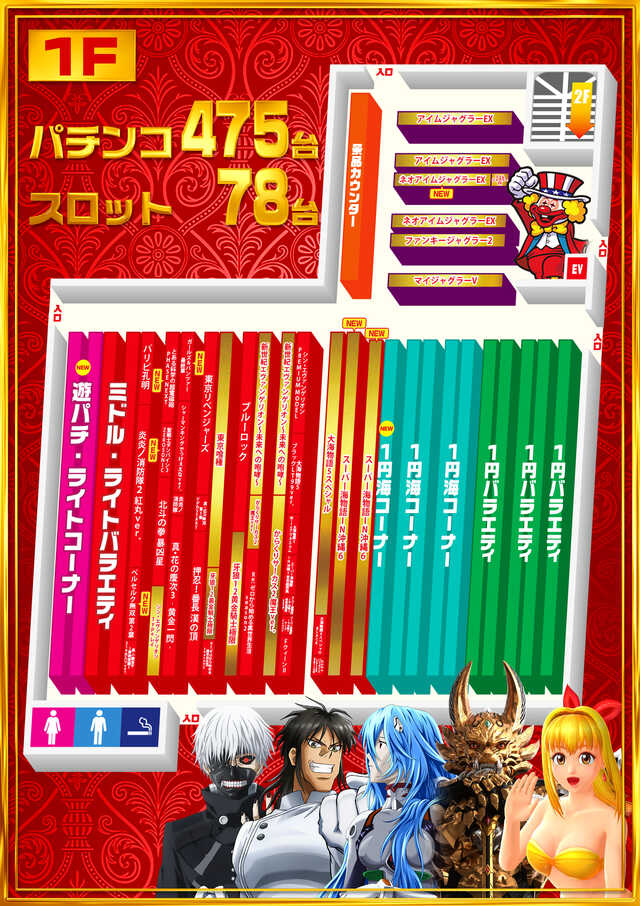 - [None]パチ:293台 [None]パチ:182台 [None]スロ:297台 [None]スロ:35台