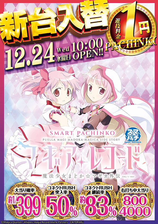 - 遊技料金4円パチンコ:180台 遊技料金1円パチンコ:200台 遊技料金20円スロット:145台