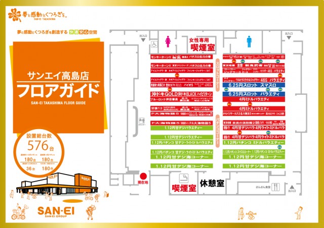 - [4]パチ:180台 [1.12]パチ:180台 [1000円/46枚]スロ:180台 [6.25]スロ:36台