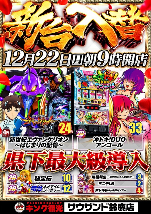 - 鈴鹿地区最大級1254台のキング観光旗艦店! パチンコ&スロット共に最新台・人気機種が多数設置! スマスロ・スマパチも県下最大級設置中!