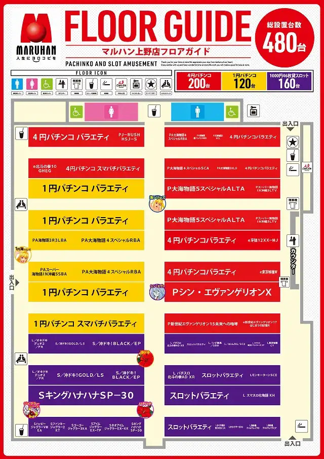 - 4パチ:200台 1パチ:120台 1000円/46枚スロ:160台