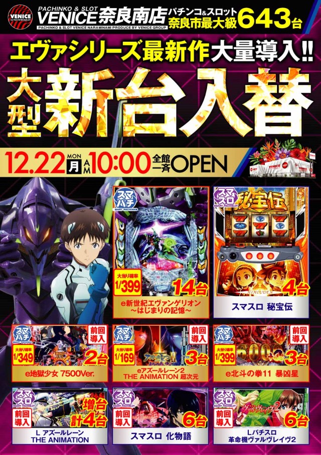- 奈良市最大スケール パチンコ&スロット 全643台!