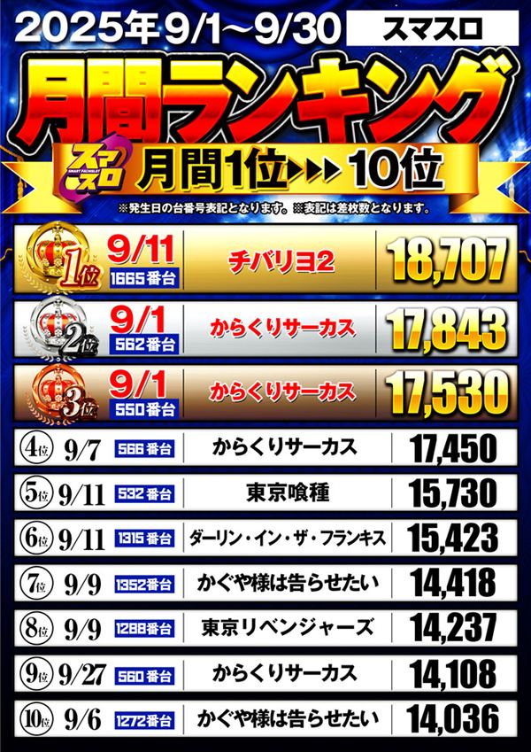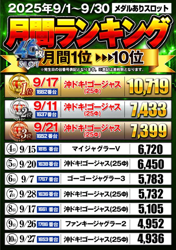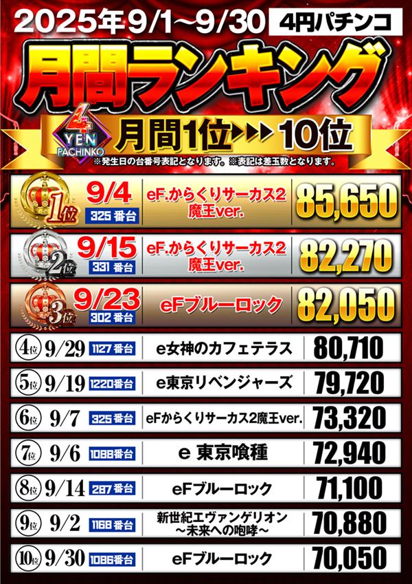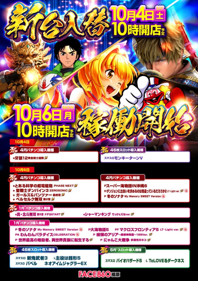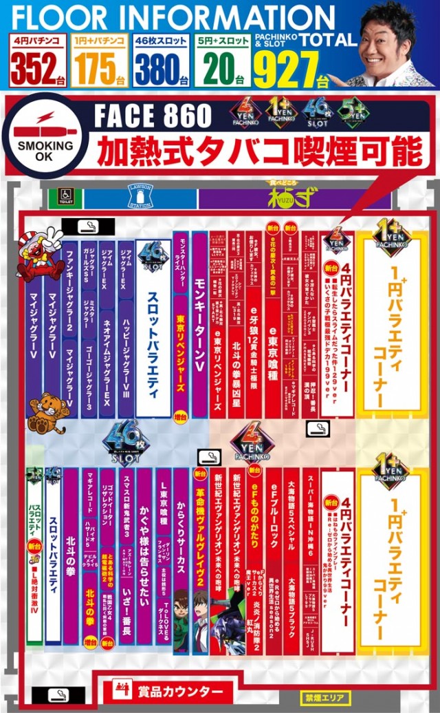 - [1.087]パチ:175台 [4]パチ:352台 [1000円/184枚]スロ:20台 [1000円/46枚]スロ:380台