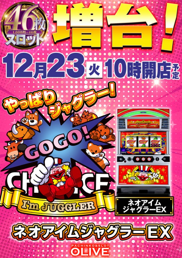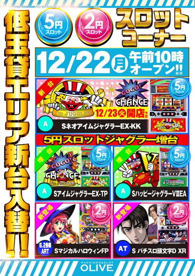 - 1000円46枚スロ 設置台数204台 低貸玉パチンコ・スロット 地域最大級設置台数355台