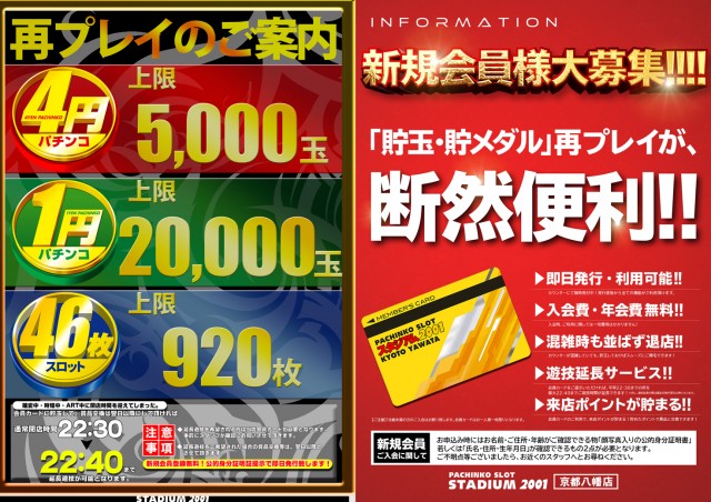 スタジアム2001京都八幡店の最新情報