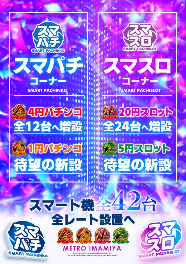 - 心の二番店メトロ。 自慢の低貸コーナーは、続々最新台登場♪