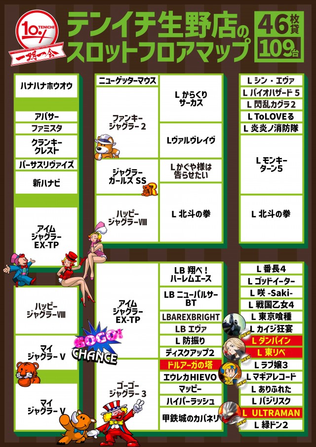 - [4]パチ:111台 [1]パチ:112台 [1000円/46枚]スロ:109台