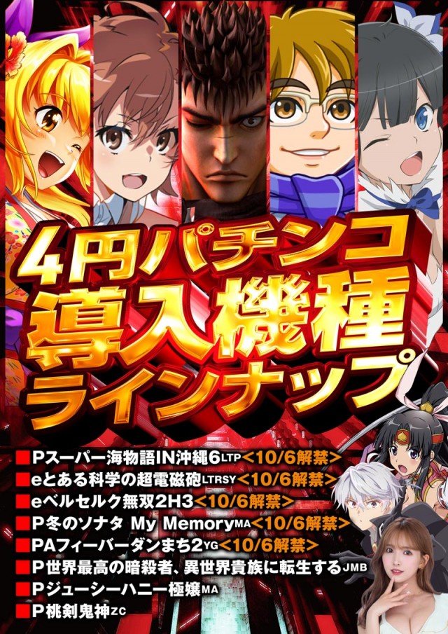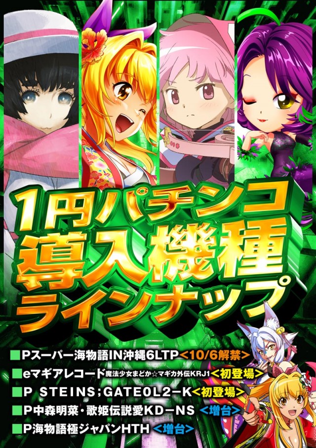 - [1]パチ:223台 [4]パチ:288台 [1000円/46枚]スロ:132台