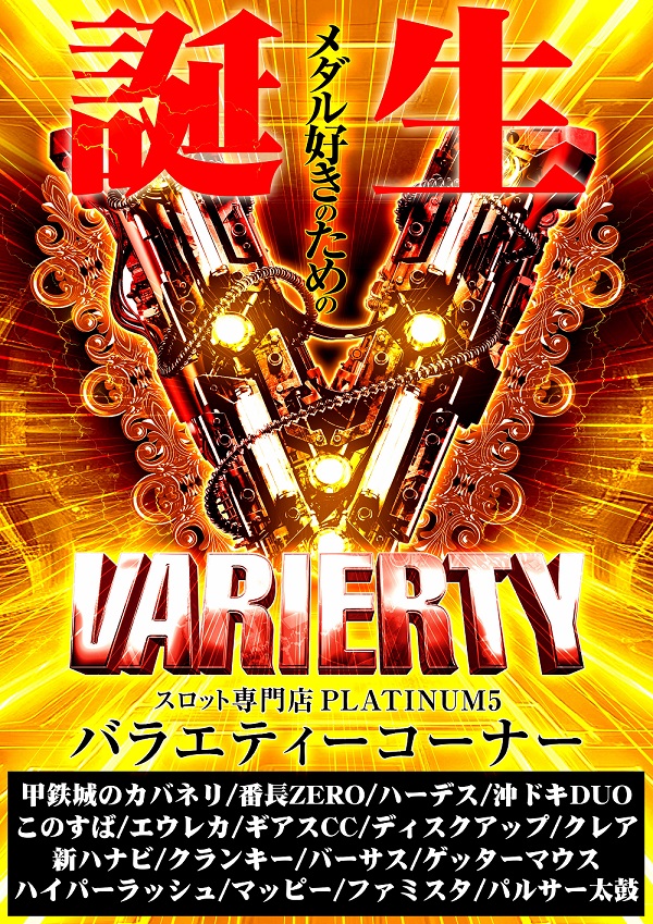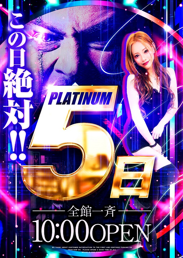 - 地域唯一のスロット専門店『プラチナム5』です。1階:スマスロフロア、2階:スマスロ&メダル機フロア、選べる③レート20円/8円/2.5円で遊べます。