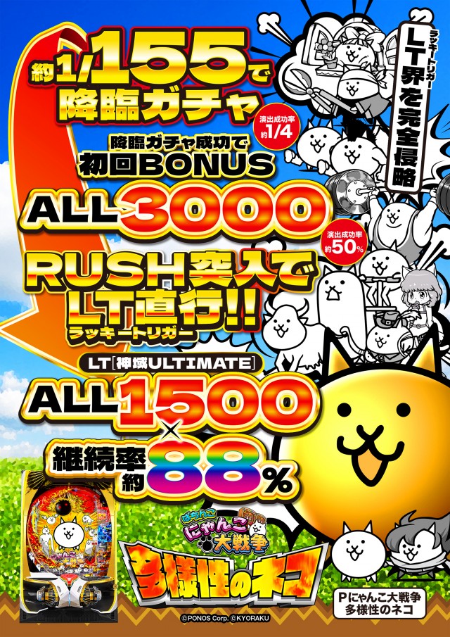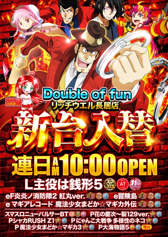 - パチンコ:[1000円445玉]72台[1000円890玉]180台 スロット:[1000円89枚]64台