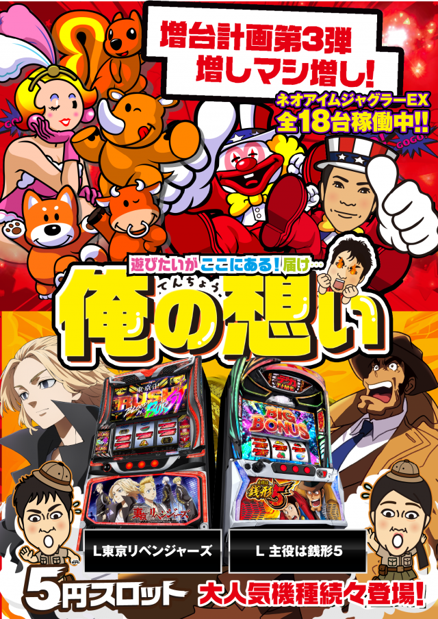 - [1]パチ:134台 [4]パチ:144台 [20]スロ:150台 [5]スロ:21台