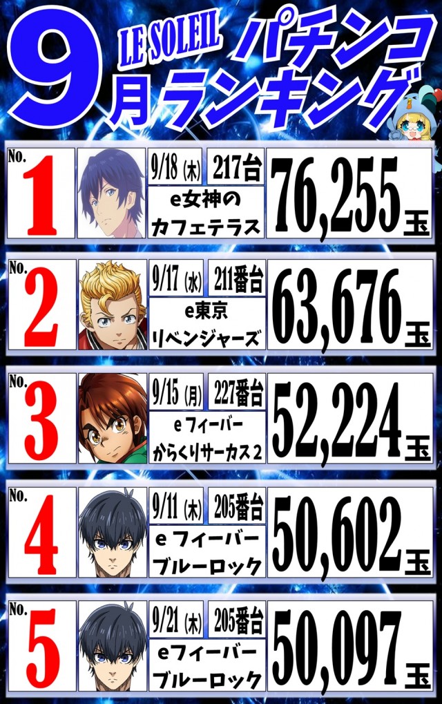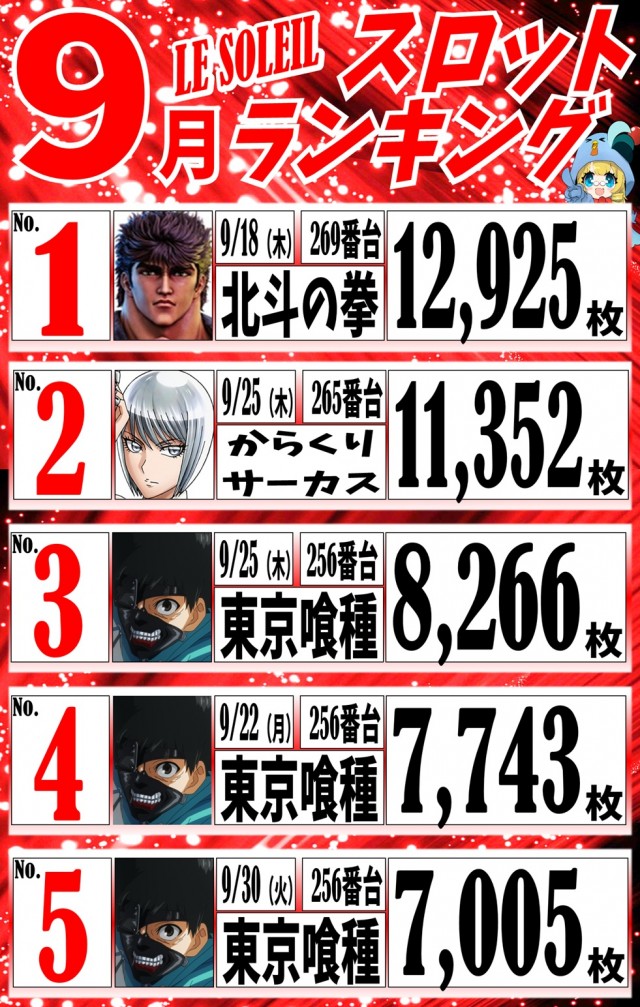 - [4]パチ:123台 [2]パチ:40台 [1]パチ:88台 [1000円/46枚]スロ:50台
