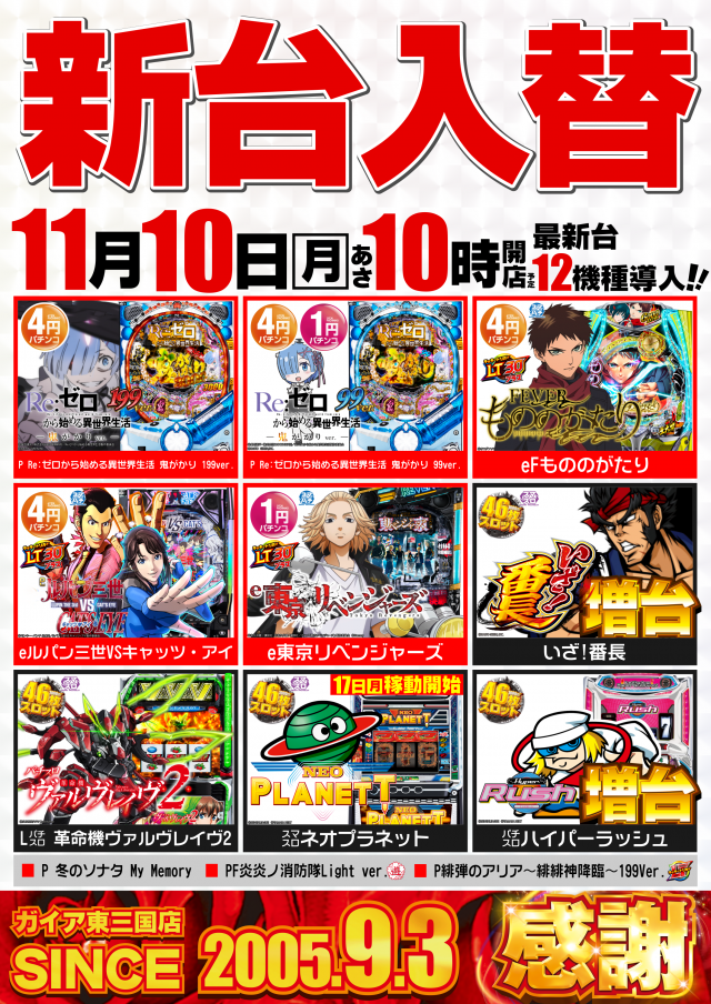 ガイア東三国店の設置機種