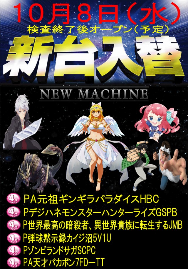 - 年中無休(新台導入機種は検査後に遊技開始となります)