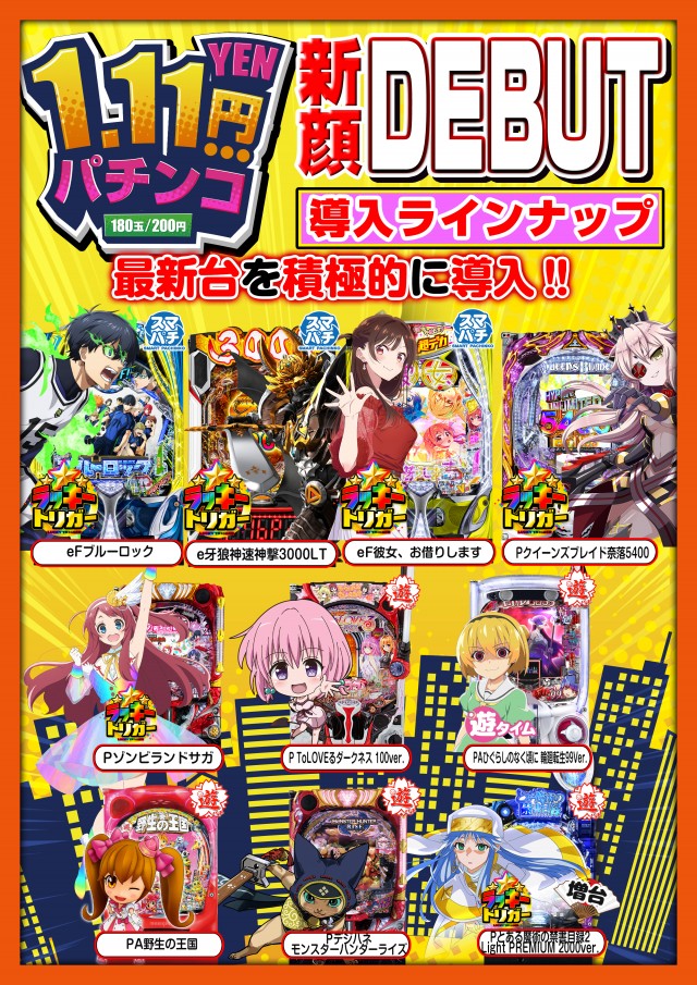 - [4]パチ:280台 [200円180玉]パチ:120台 [1000円/46枚]スロ:200台 [1000円/178枚]スロ:40台
