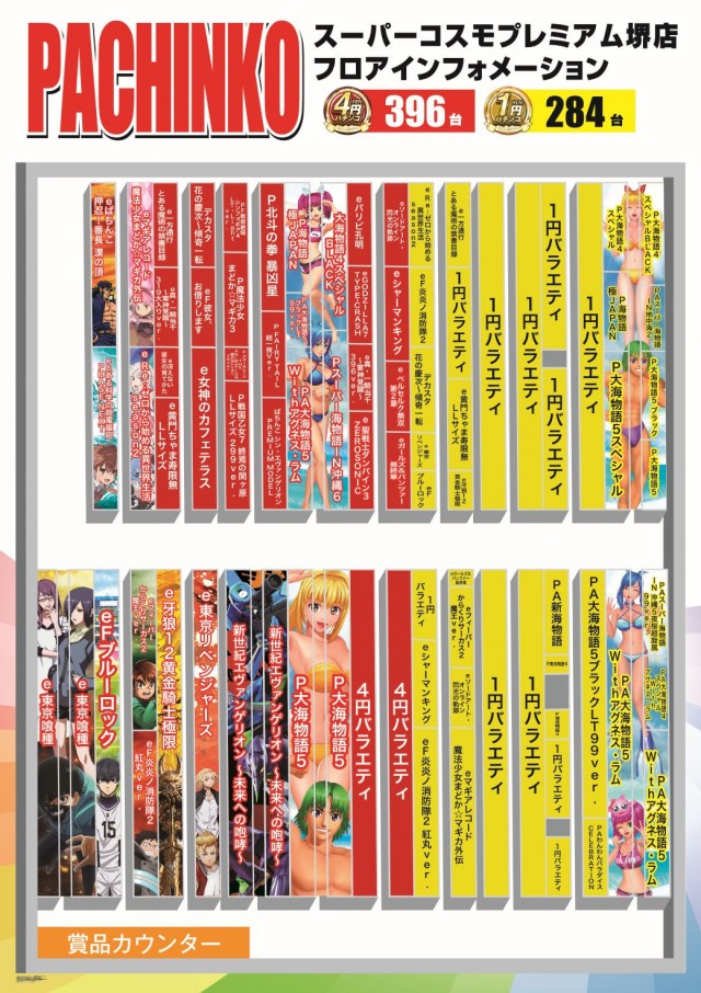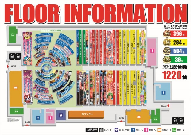 - [4]パチ:396台 [1]パチ:320台 [1000円/46枚]スロ:462台 [1000円/178枚]スロ:42台