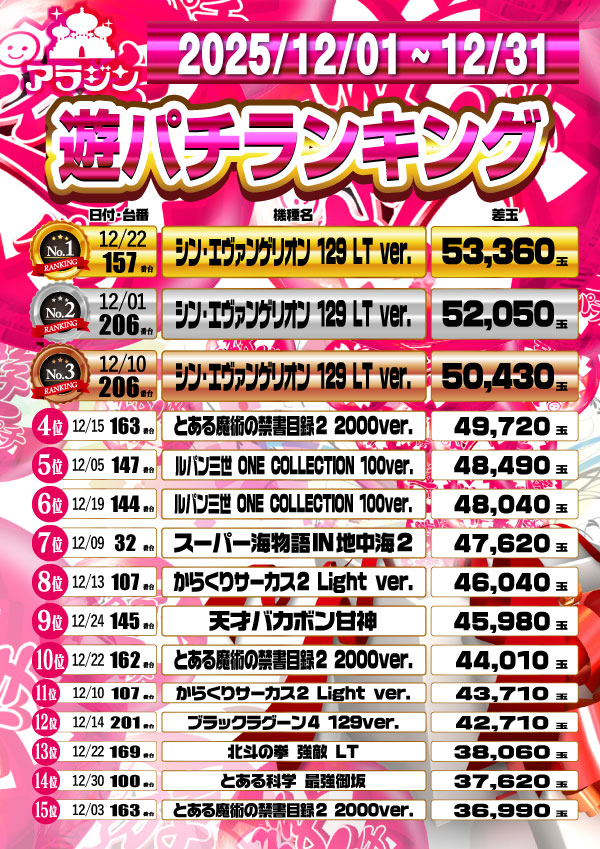 新宿アラジンの設置機種