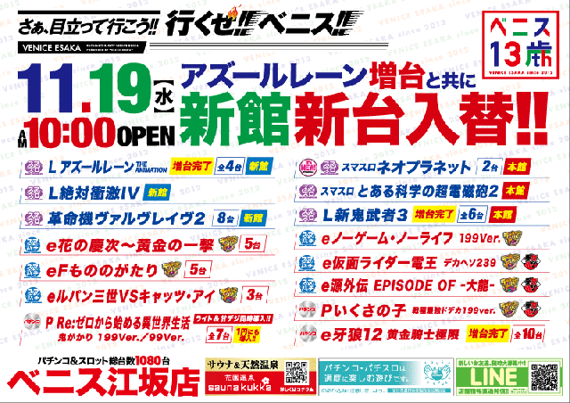 - [4]パチ:267台 [1]パチ:390台 [1000円/184枚]スロ:90台 [1000円/46枚]スロ:283台