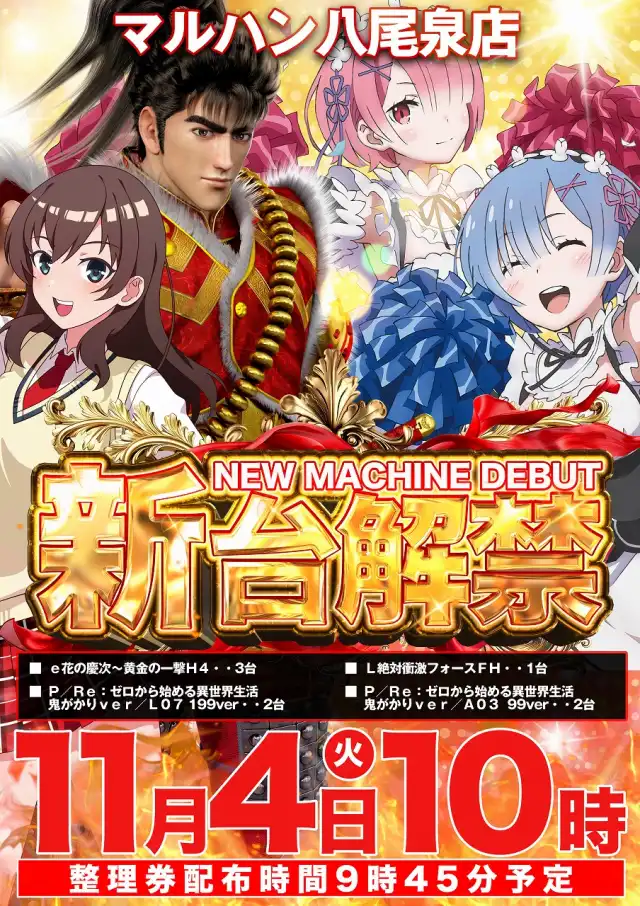 - [4]パチ:280台 [1]パチ:160台 [1000円/46枚]スロ:160台 [5.43]スロ:40台