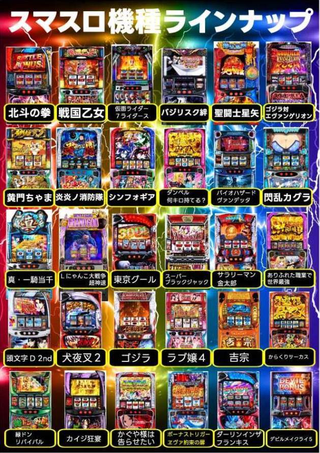 - ・おかげさまで22周年! ・ジャグラーシリーズ設置台数地域最大級 ・海物語シリーズ設置台数地域最大級 ・全台無制限 ・同レートでの台移動自由 ・全レート貯玉、貯メダル可能 ・貯玉再プレイ手数料なし ・貯玉再プレイ制限なし ・高級マッサージチェアあり ・全台の特賞回数、差玉が見れ るランキングマシーンあり