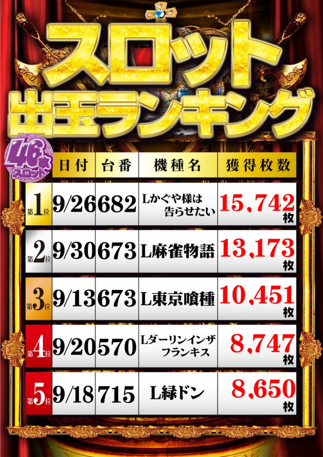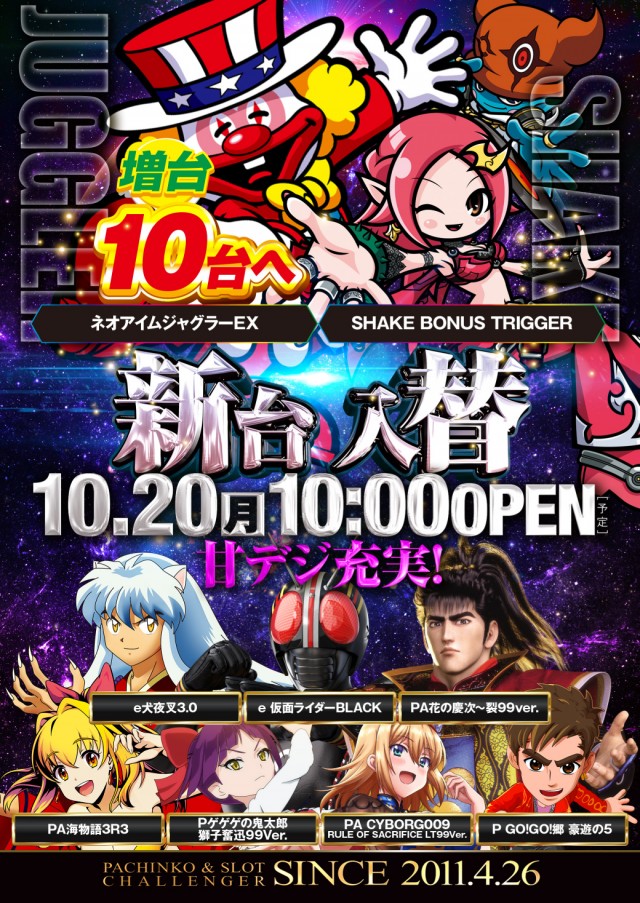 - [4]パチ:60台 [1]パチ:161台 [20]スロ:120台 [5]スロ:58台