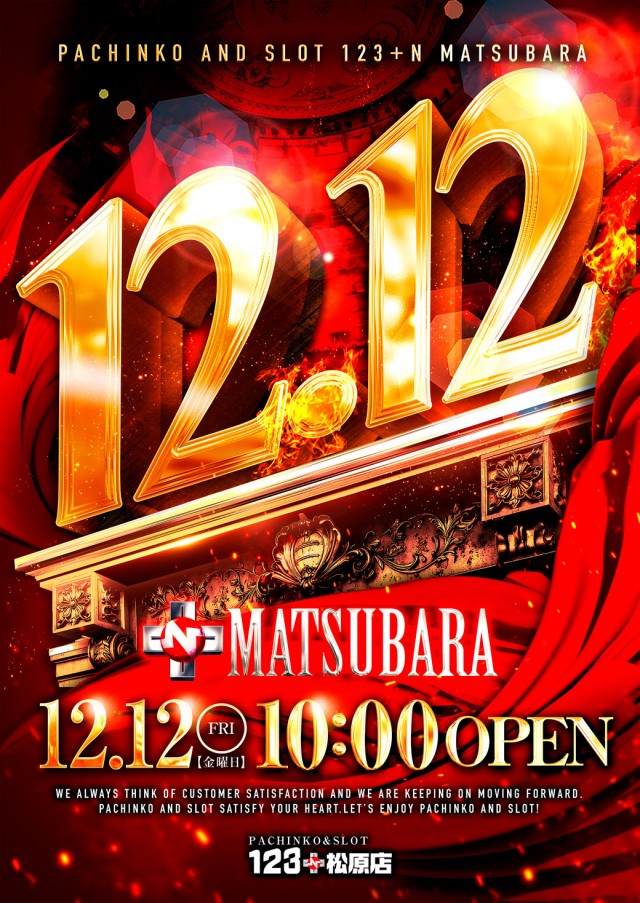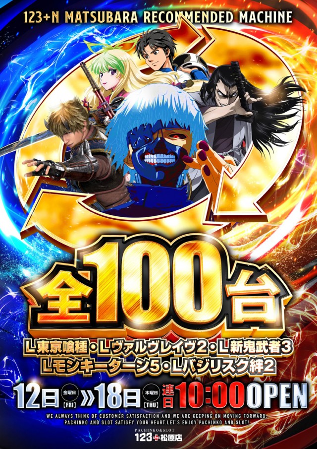 - 【延田グループ旗艦店舗】 123+N松原店&スロット123松原店 123松原店誕生 2003年11月12日 123+N松原店誕生 2019年11月27日 関西最大級1713台設置 パチンコ総台数/792台設置 スロット総台数/921台設置 全てにおいて最大級のスケールを活かし推し進めます!