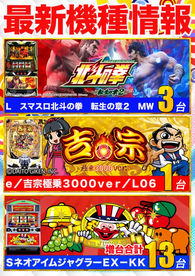 - [4]パチ:199台 [1]パチ:120台 [1000円/46枚]スロ:117台 [5.43]スロ:40台