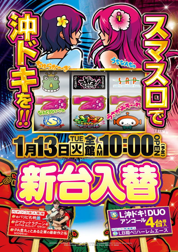 - [4]パチ:240台 [1]パチ:176台 [1000円/46枚]スロ:292台 [5]スロ:100台