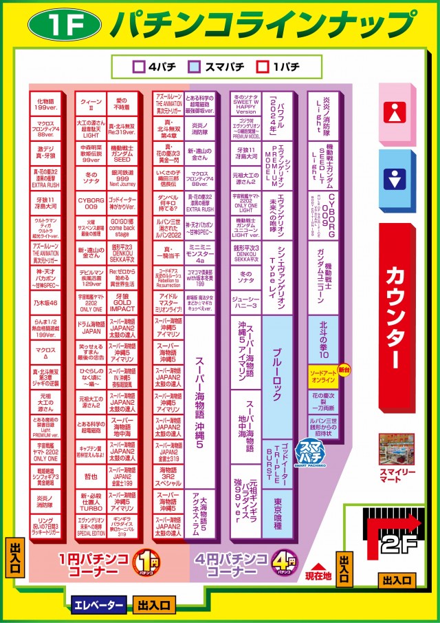 - 1Fパチンコフロア 2Fスロットフロア 専用フロア有
