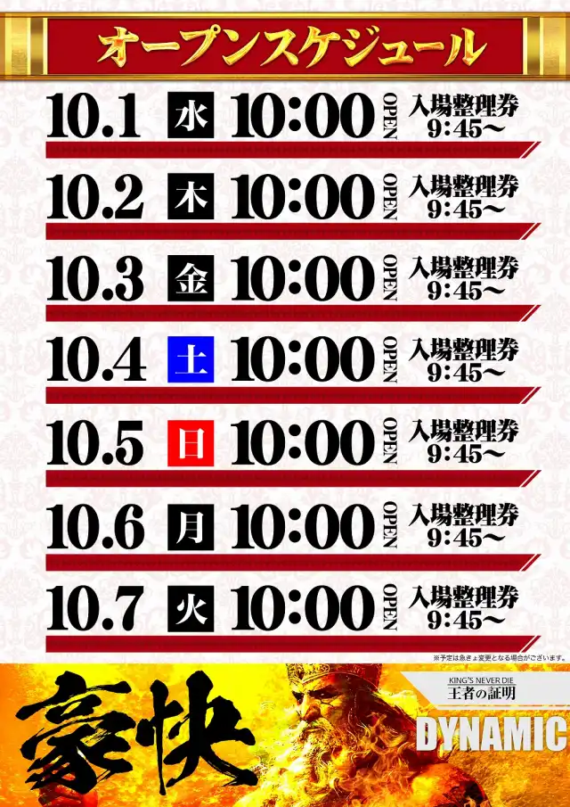 - 年中無休※新台入替の前日等お休みを頂く場合がございます。