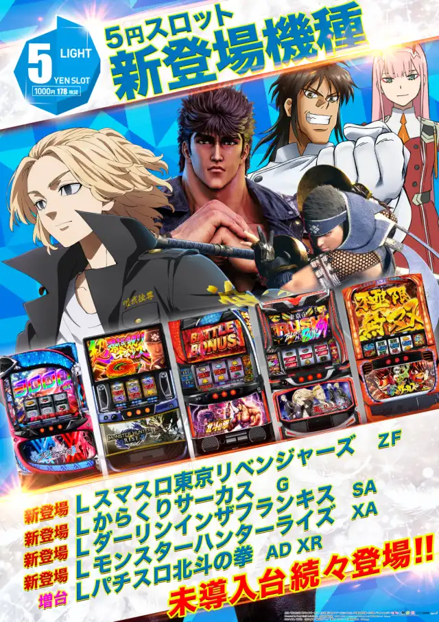 - [4]パチ:400台 [1]パチ:200台 [1000円/46枚]スロ:360台 [1000円/178枚]スロ:40台
