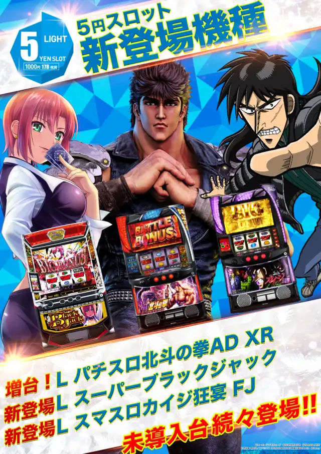 - [4]パチ:400台 [1]パチ:200台 [1000円/46枚]スロ:360台 [1000円/178枚]スロ:40台