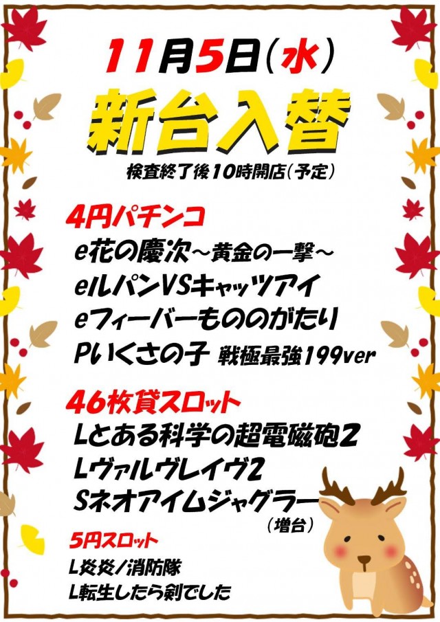 - 4パチ:88台 1パチ:120台 1000円/46枚スロ:80台 5スロ:32台