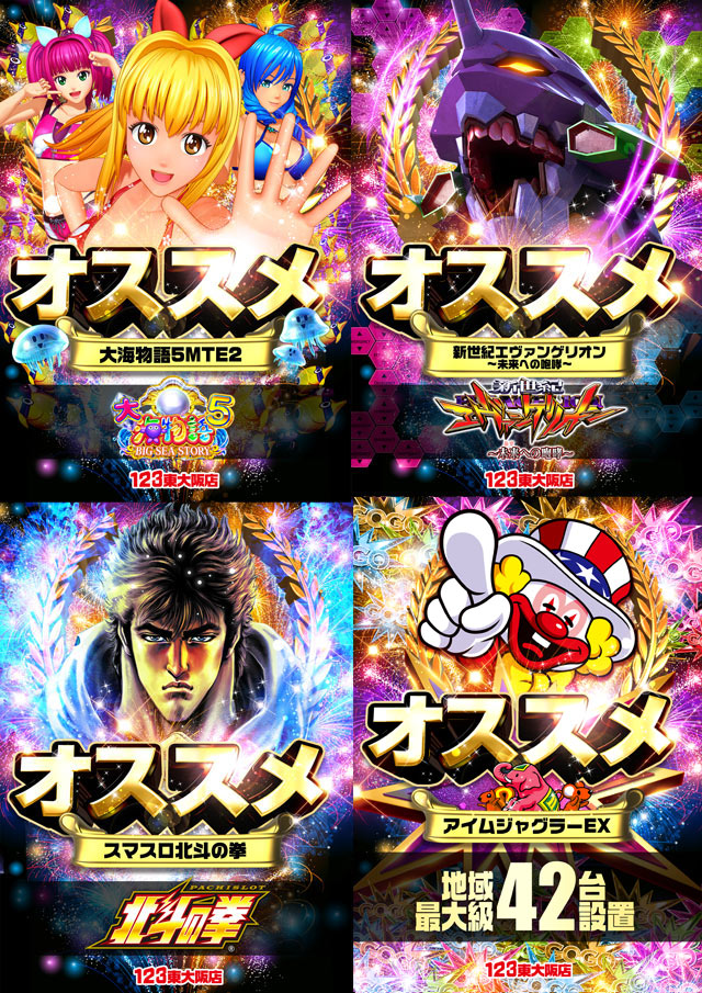 - [パチ] 4円:160台 1円:200台 計360台 [スロ] 1000円/46枚:215台 1000円/178枚:57台 計272台 [総台数]計632台