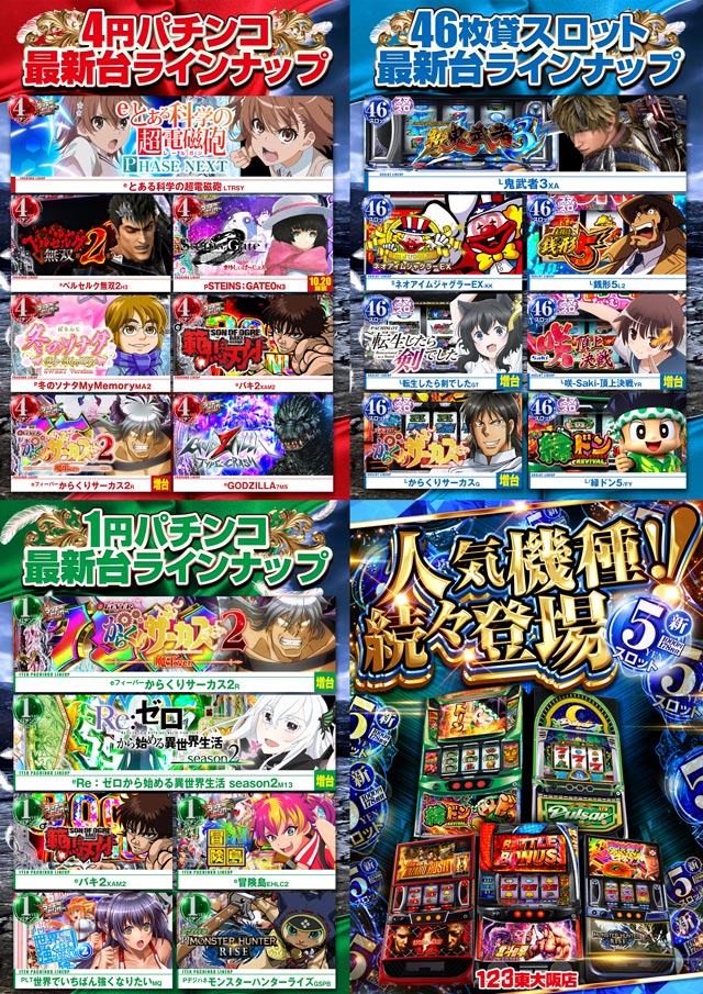 123東大阪店の設置機種