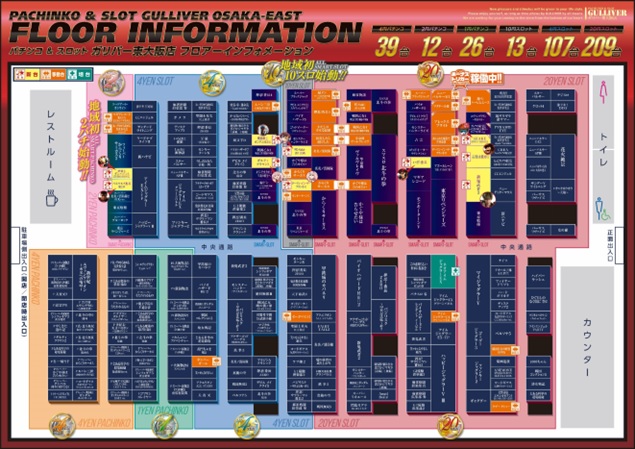 - [4]パチ:39台 [1]パチ:26台 [2]パチ:12台 [1000円/46枚]スロ:209台 [1000円/230枚]スロ:107台 [1000円/92枚]スロ:13台