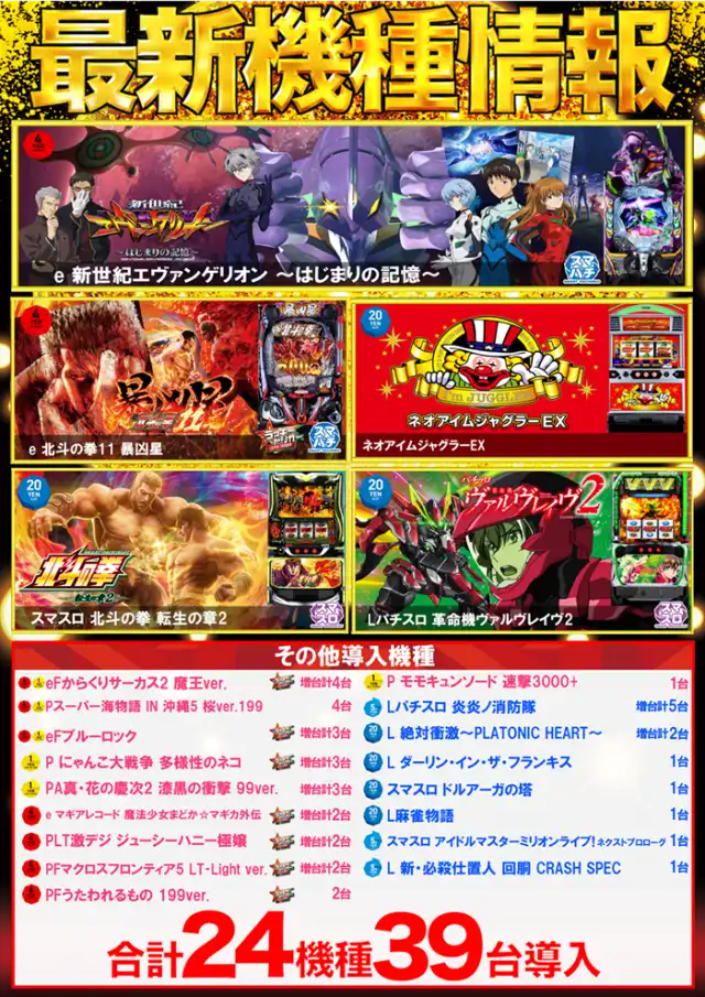 - 4パチ:184台 1パチ:184台 20スロ:80台 5スロ:80台