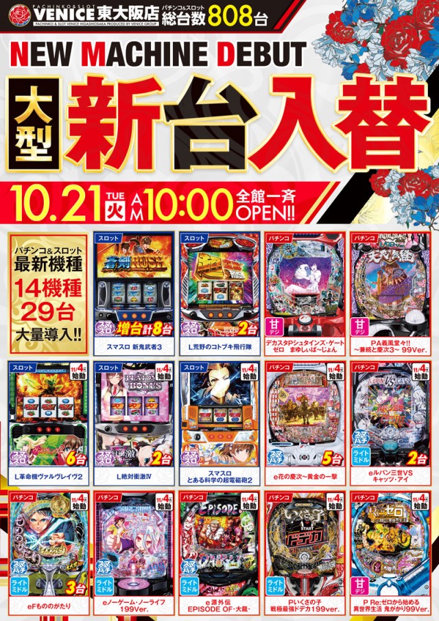 - [パチ] 4円:240台 1円:160台 計400台 [スロ] 1000円/46枚:388台 5円:20台 計408台